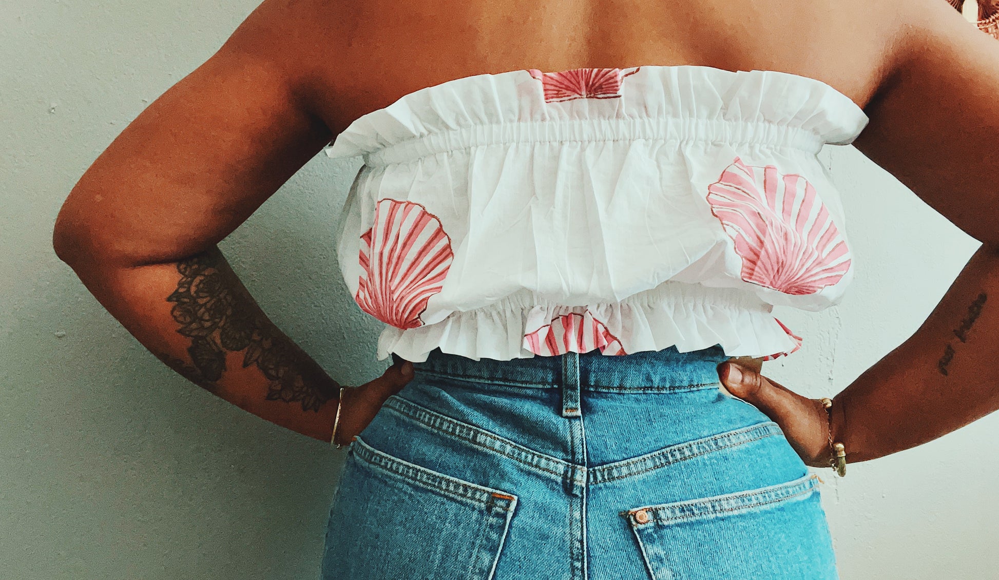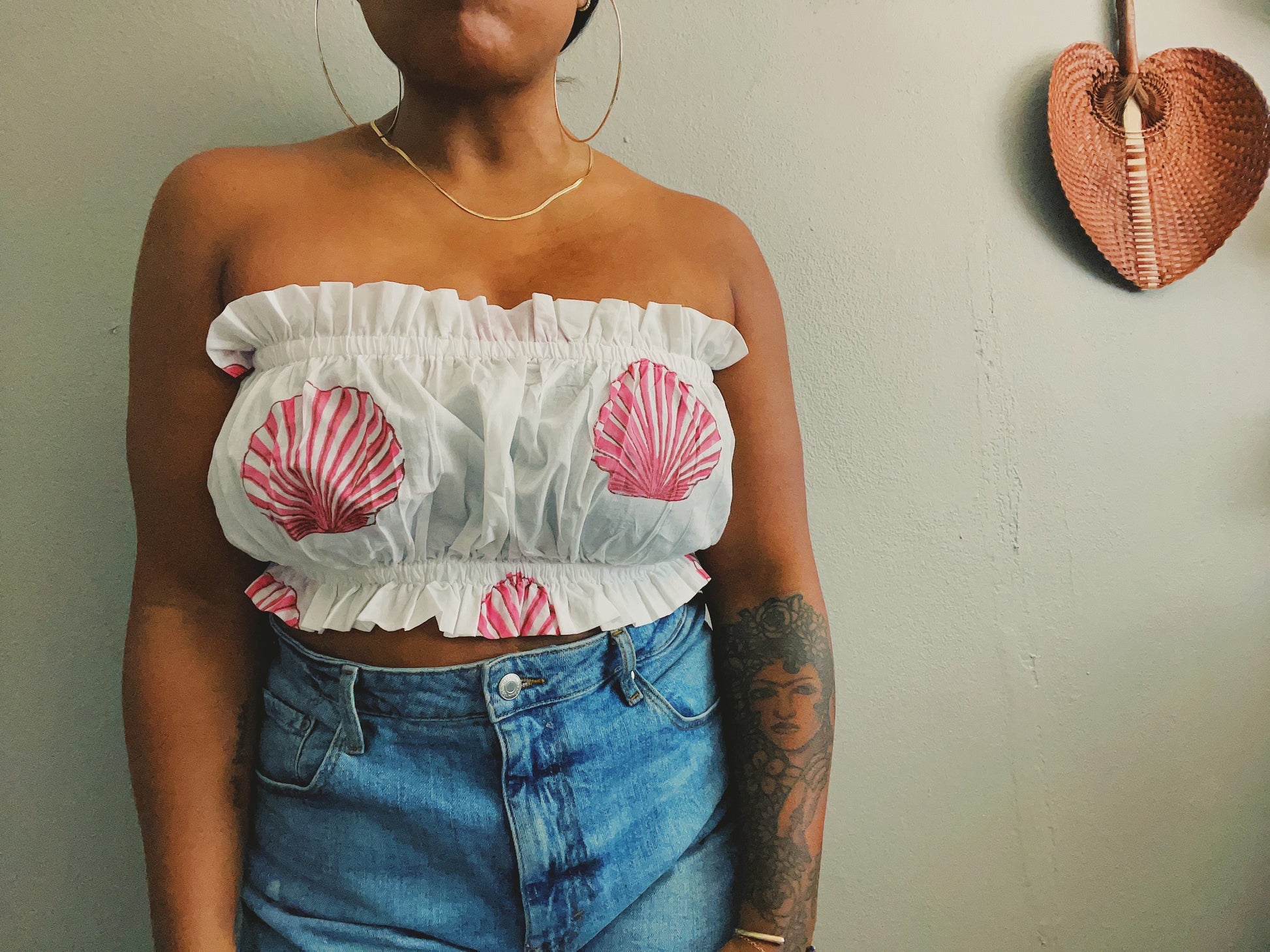 One size fits all. Designed and made in-house. 100% cotton. Unlined.