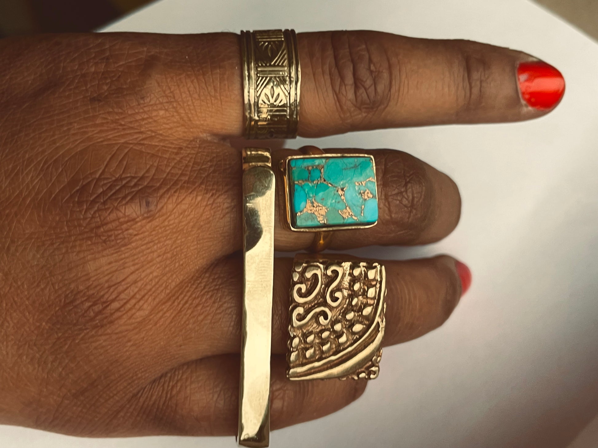 ** I request only 1 size for this ring. Select the main finger you want to anchor the piece. The other two fingers will share the double space. I wear this ring on my middle, ring & pinky fingers. I need full range of motion with my first two fingers.