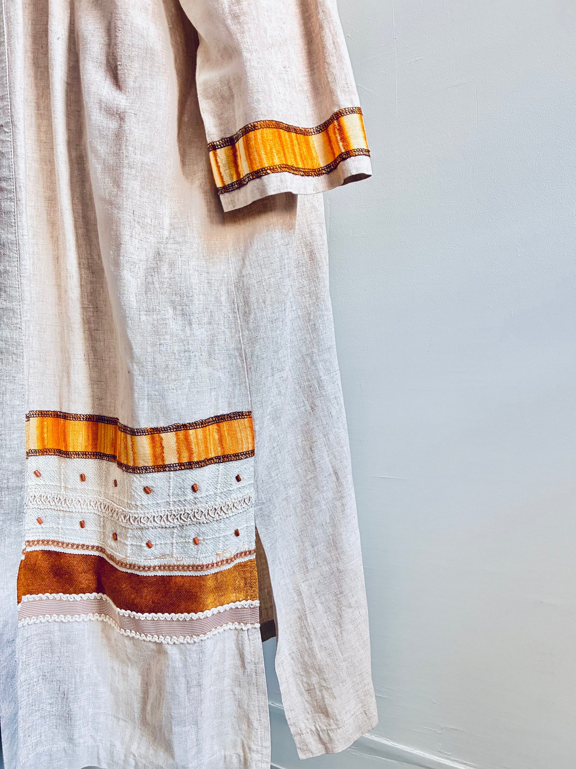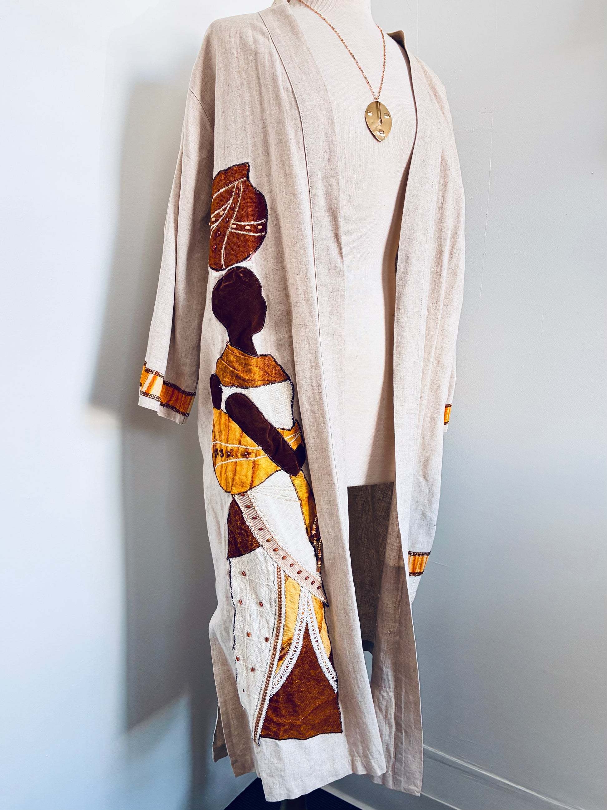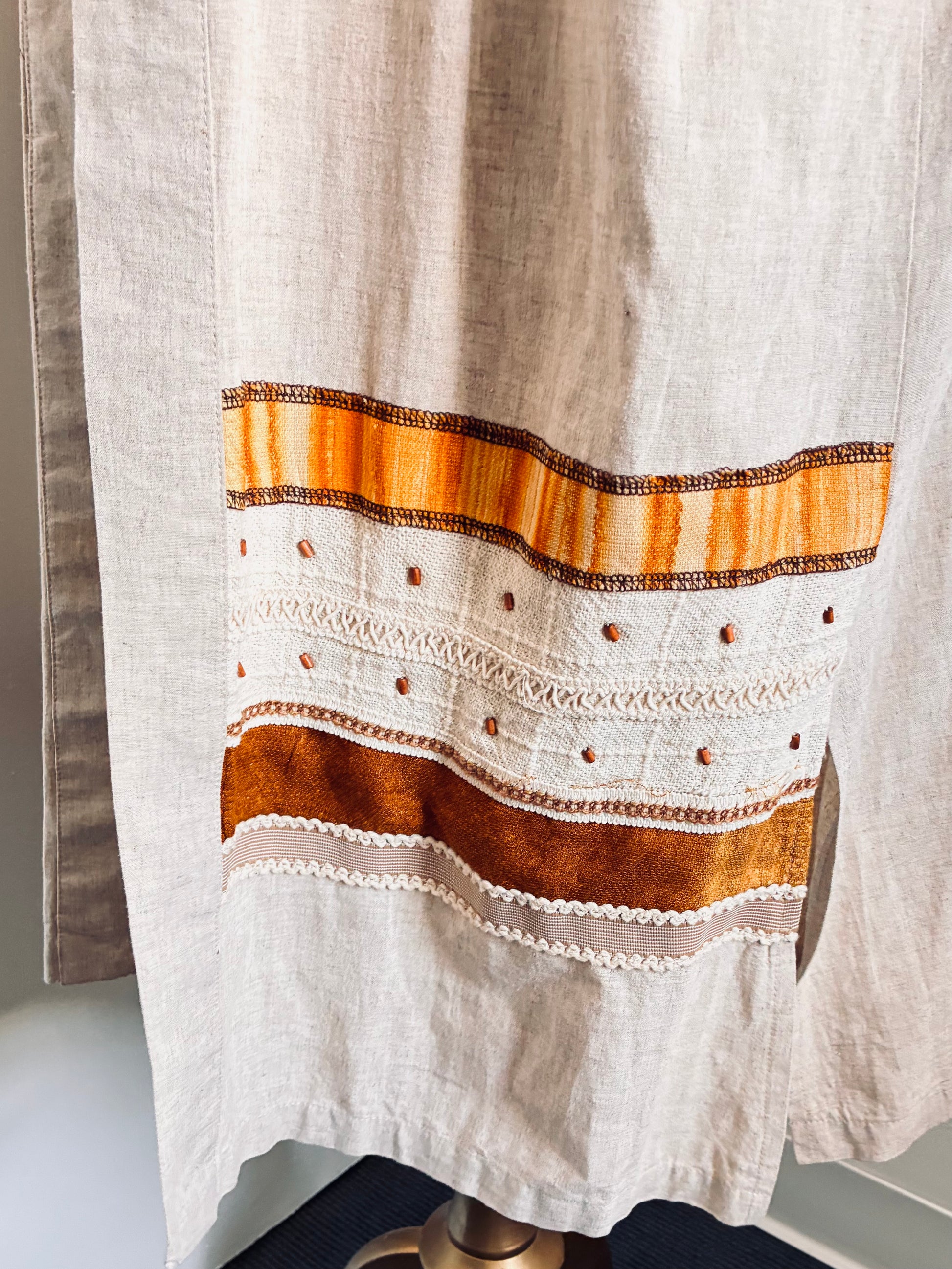 14. Queen Mother Linen Jacket 45" length| flat lay shoulder to wrist 20"|shoulder to shoulder 20" | 75% linen 25% cotton