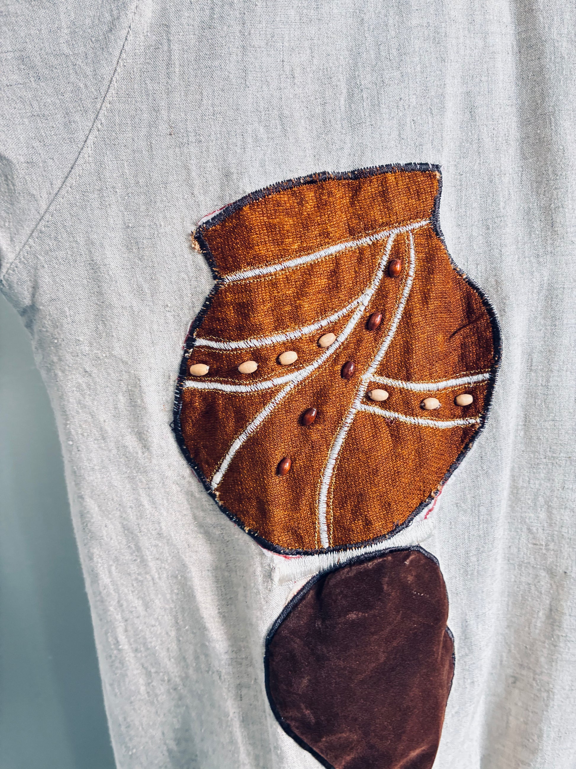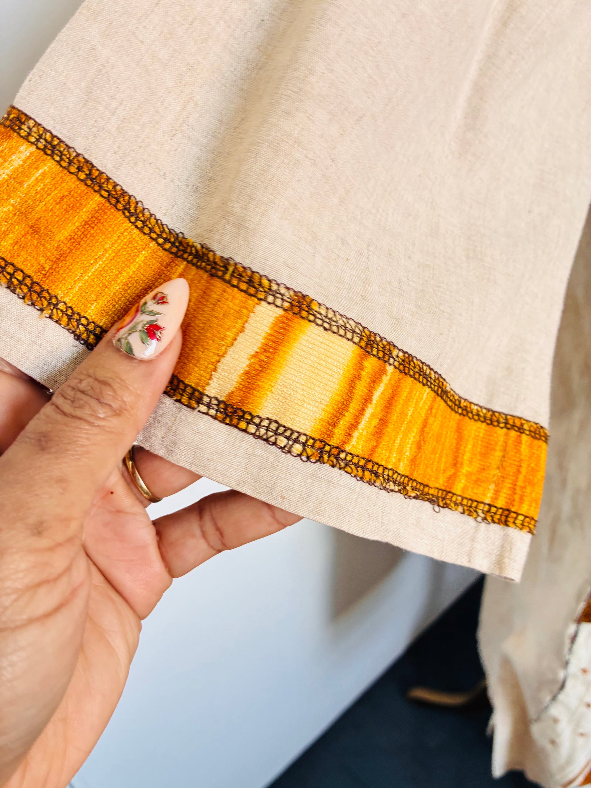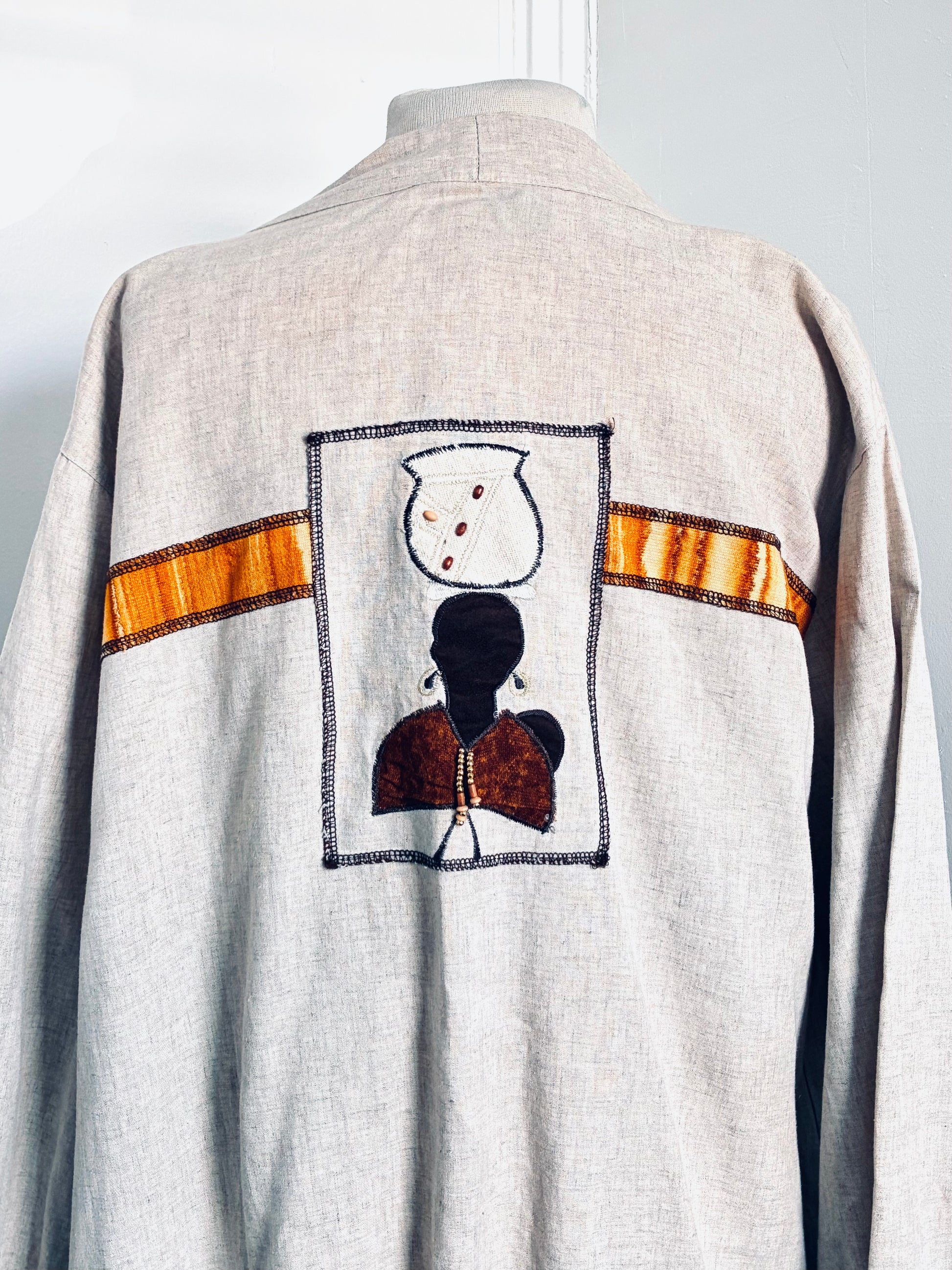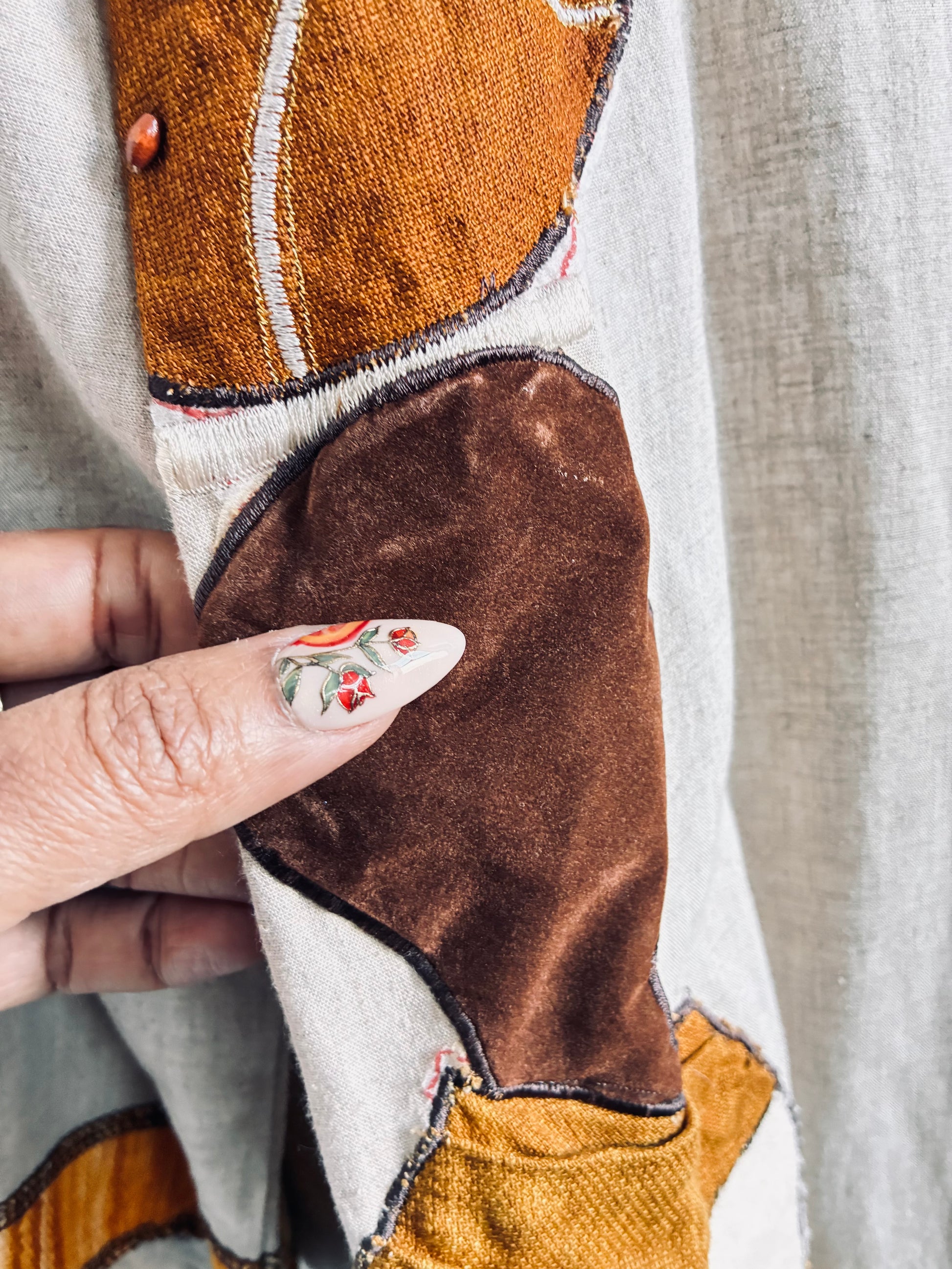 14. Queen Mother Linen Jacket 45" length| flat lay shoulder to wrist 20"|shoulder to shoulder 20" | 75% linen 25% cotton