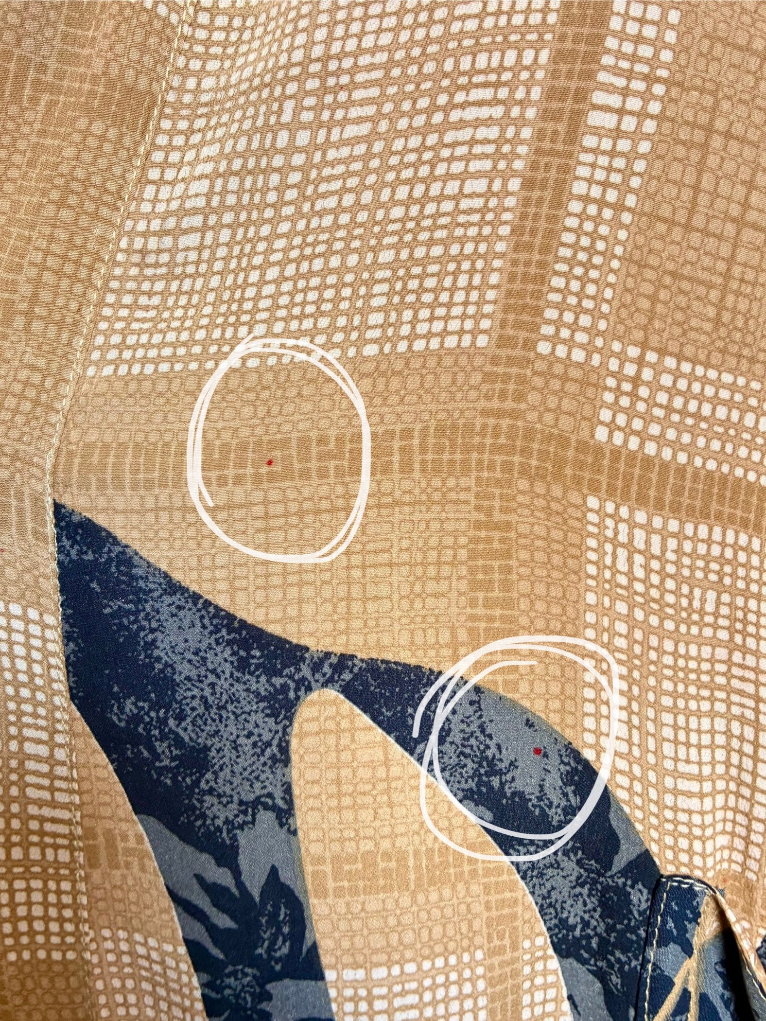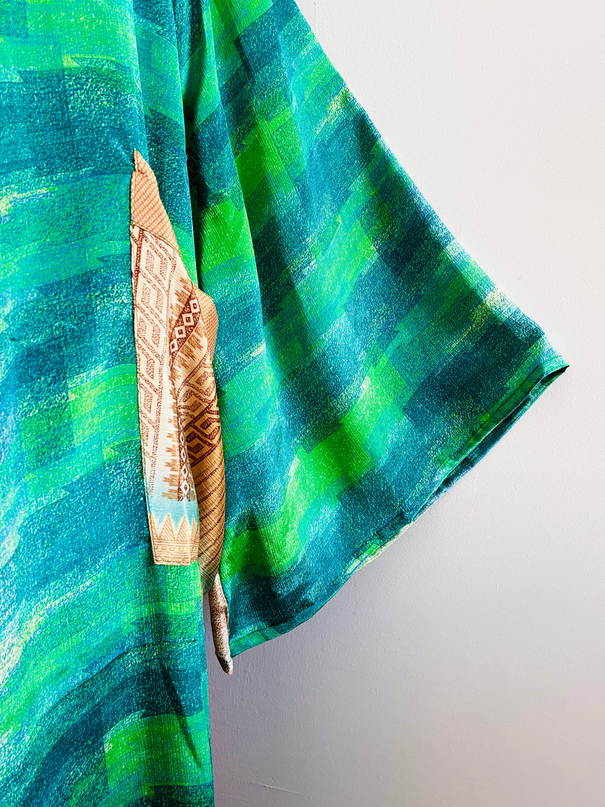 13. green floral silk rayon blend [small defect, see pics, priced accordingly]