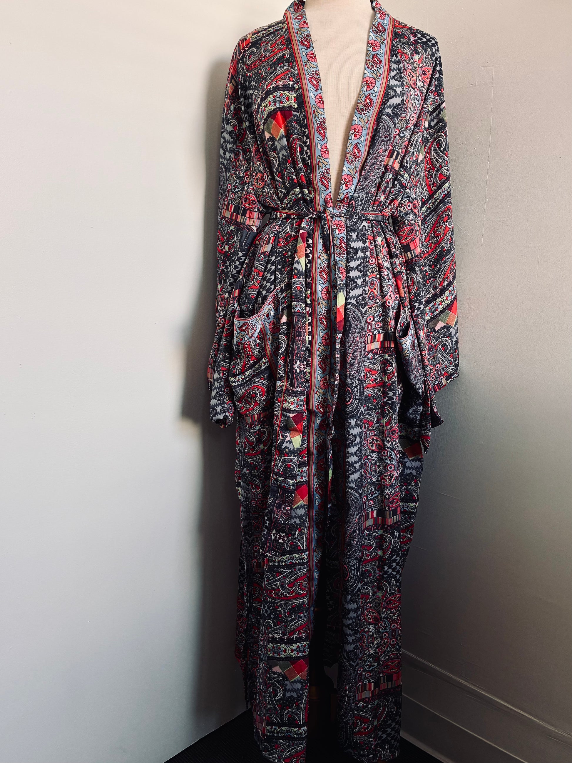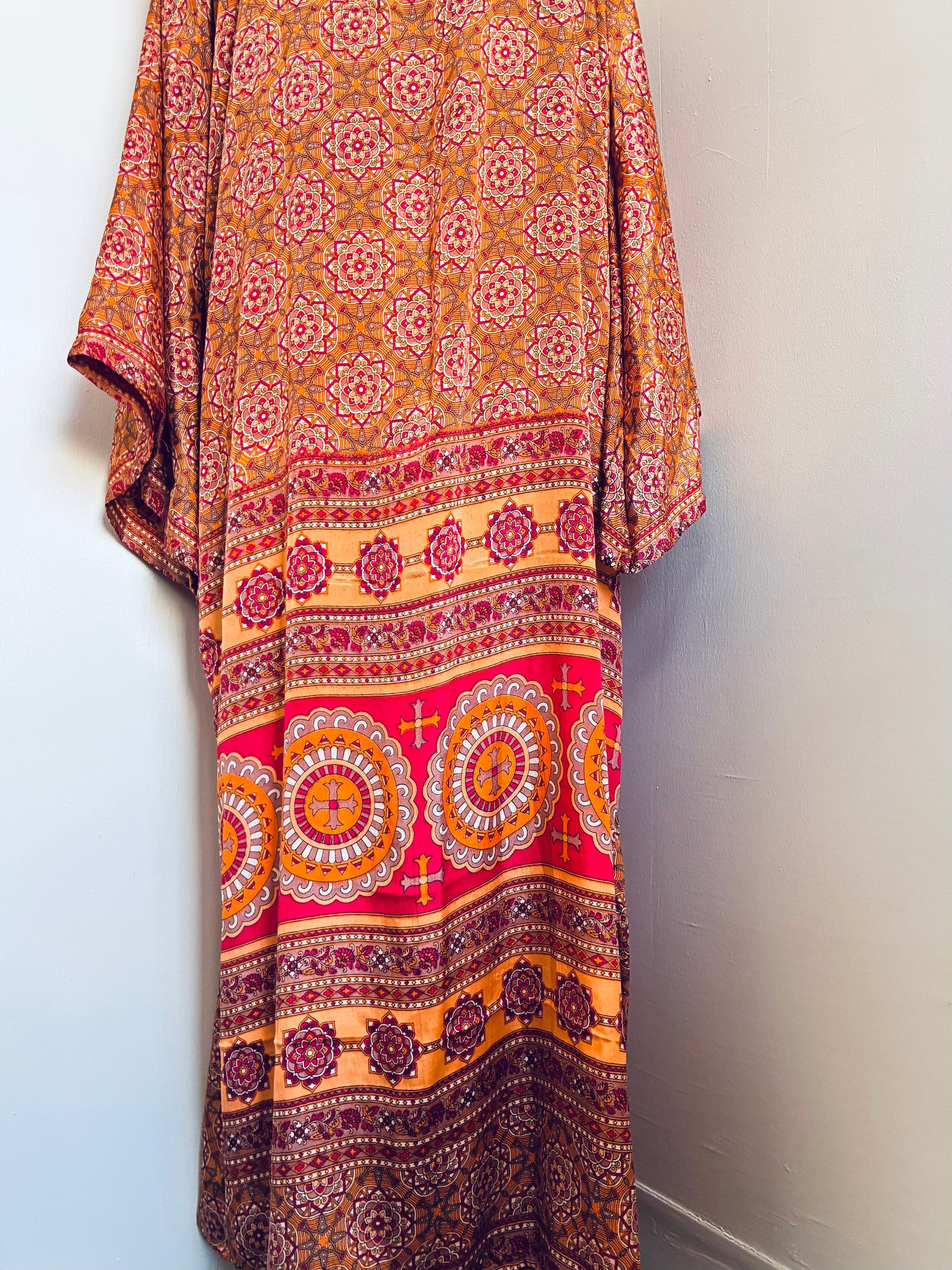 16. kaftan silk rayon - drawstring 47" length, 25" flat lay width