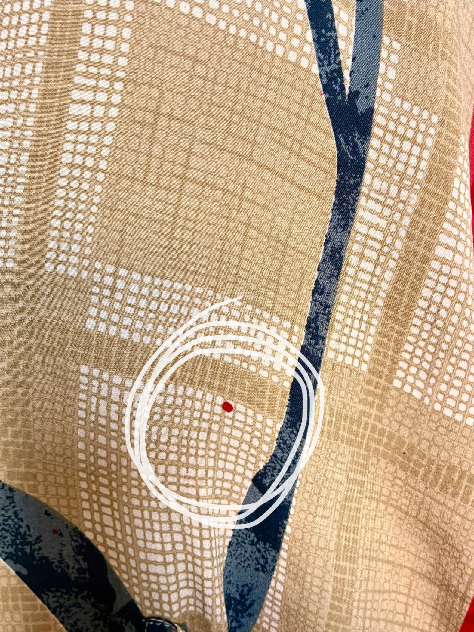 7. red + taupe + blk + white high quality silk {small defect, see images, priced accordingly]