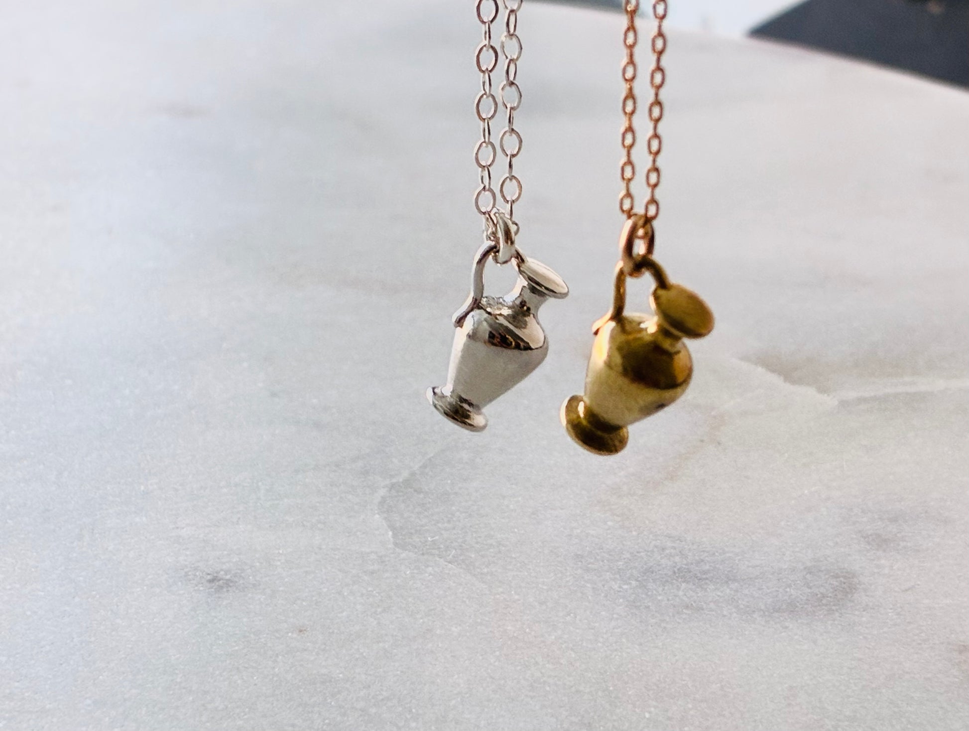 These teenie solid brass (or silver plated) urns are simply perfect.